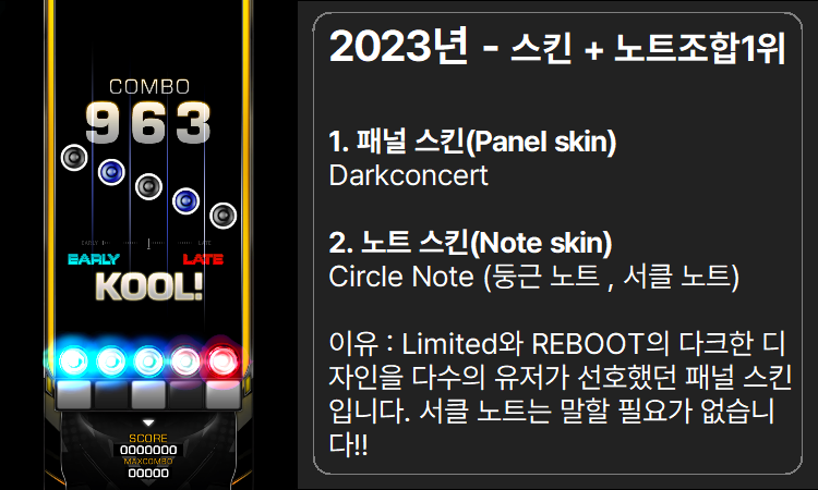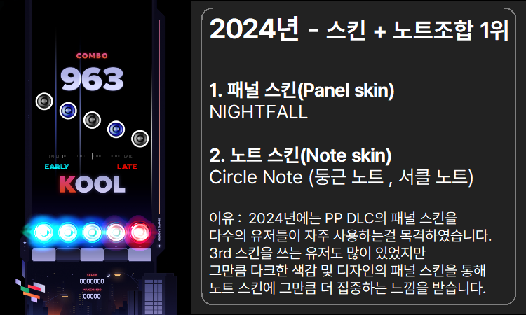 이제 작년인 2024년입니다. - (뇌피셜 기준) 유저들이 패널(스킨) + 노트 최강 조합은~~~