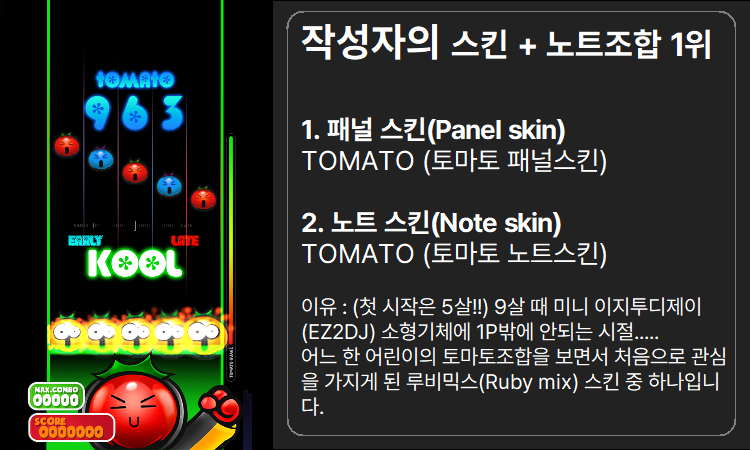 패널(+노트) 스킨 - 9살에 소형 기체(예: EZ2DJ MINI)에서 토마토 조합을 처음 본 순간, 강렬한 첫인상을 남겼습니다.